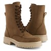 Take on the day in style with the Andrea tall combat boots for women. Designed with a soft touch material, these boots are as comfortable as they are chic. The lace-up detail and side zipper offer a secure fit and easy on/off access. The durable rubber sole provides traction and support, making them perfect for any occasion. Elevate your outfit with these timeless boots that combine fashion and function seamlessly.