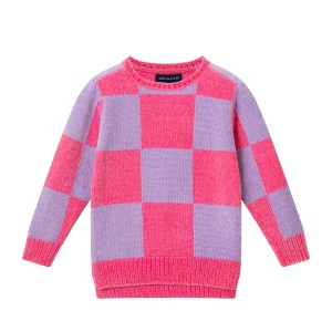 This checkerboard sweater is a bold take on cozy style, combining playful pattern with soft, all-day comfort. The eye-catching checkered design in hot pink and lavender gives off serious cool-girl energy, while the classic crewneck and ribbed trim keep it grounded. Whether paired with jeans, leggings, or layered over a skirt, it adds a pop of personality to any outfit. It’s the kind of piece that turns getting dressed into something fun.