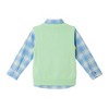 Brighten up your little one’s wardrobe with this charming three-piece outfit! Featuring a fresh plaid button-up bodysuit, a soft mint knit vest, and tailored chambray pants, this look is perfect for special occasions or stylish everyday wear.