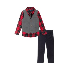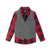 - Classic Layered Look: Includes a plaid button-down shirt paired with a tailored vest for a timeless, polished appearance.