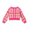 This cropped cardigan brings serious retro charm with a poppy pink plaid that’s anything but shy. The bold button front and contrast ribbed trim give it structure and flair, while the soft knit makes it an easy pick for all-day comfort. Balloon sleeves add volume and a vintage vibe that pairs perfectly with high-waisted jeans, skirts, or layered dresses. Whether worn buttoned up or open over a tee, it’s a standout layer that’s equal parts cozy and cool.