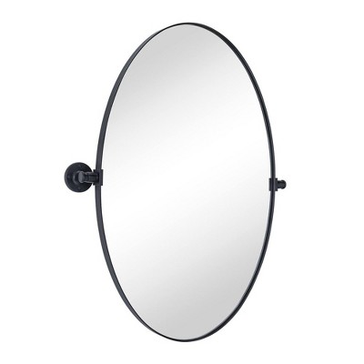 ANDY STAR P02-S10-O2538B Modern 25 x 38 Inch Oval Wall Hanging Bathroom Vanity Mirror with Adjustable Pivoting Stainless Steel Frame, Matte Black