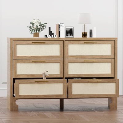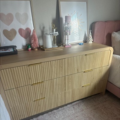 Angel Sar 55" Boho Dresser with Arched Top, 6-Drawer Fluted Wood Storage with Gold Handles, Natural Wave Pattern Bedroom Organizer