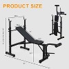 - Adjustable Crossbar & Backrest: The barbell rack adjusts to 5 height levels, while the backrest offers 3 angles—incline, flat, and decline. Customize your workout positions to suit various exercises and training needs with this flexible, all-in-one weight bench set.