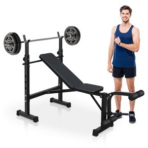 Olympic Weight Bench Set with Adjustable Weight Bench and Barbell Rack, Workout Bench for Home Gym with Leg Developer
