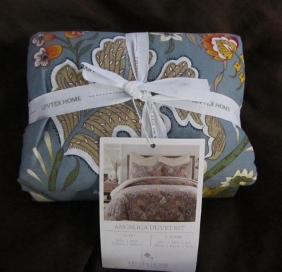 - LEVTEX ANGELICA : The Angelica duvet collection is a richly colored, detailed Jacobean floral. The set consists of a duvet cover and matching pillow cases .