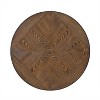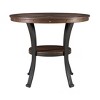 The Angelo Side Table by Powell Company blends the warmth of wood with the strength of metal for a timeless, transitional look. Its round tabletop, finished in an umber brown oak woodgrain veneer, brings natural elegance to any space, while the nailhead accents along the apron add a touch of vintage charm. The sturdy metal base features gracefully curved legs, providing both style and stability. A small circular shelf beneath the tabletop offers extra space for décor or everyday essentials, making this table as functional as it is beautiful.