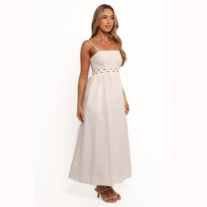 • A: The dress has thin adjustable straps, allowing for a customizable fit.