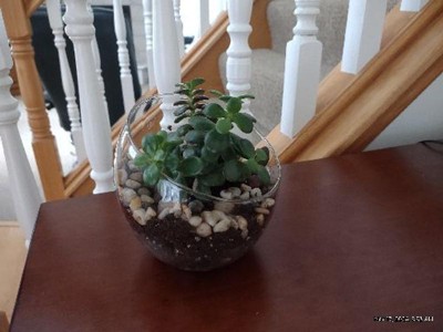 A simple vase that is stunning. Perfect for succulents. I used a few rocks on the bottom and soil appropriate for succulents and then a layer of small rocks on top. And it is only $10.00!