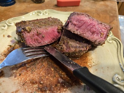 Honestly, someone would have to actually pay me SUBSTANTIALLY more to eat this than what I paid for 2 small girl I ins ($9.75). I used them for Mongolian Beef. I VERY THINLY sliced and marinated them overnight in a mixture that included baking soda -- meaning they should have been fork tender. There was SO MUCH GRISLE that I think Im going to ask for a refund and I dont think I've ever asked for a refund from a supermarket in the entire time I've been shopping for myself (late 1980s). I had guests eating over and thank goodness I had two chicken breatss in the freezer to replace this sirloin. It actually looked acceptable in the packaging. The people that butcher and package this meat should be fully embarrassed.... I would go with 80/20 ground beef over these cuts. I wish I'd thought to take a picture of the sirloin cuts in the package and out of the package -- but who actually thinks to do that, especially when you're preparing a meal for guests. It's even worse that you cannot tell from the packaging that it is nearly all fat and even more grisle.
