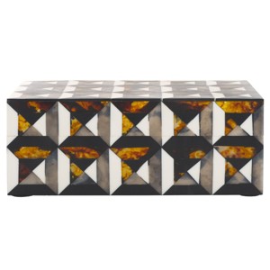 Each rectangle-shaped box in this two-piece set features a captivating pattern of dynamic triangle and diamond shapes that alternate to create a visually striking effect. The beautiful ember effect woven throughout the pattern adds a warm, subtle radiance, enhancing the overall design. The versatility of these boxes allows them to be stacked or nested, providing both functional storage solutions and saving space when not in use.