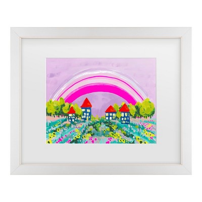 This ready to hang, matted framed Wall Décor Living Room by Trademark Fine Art features a painting of houses and trees with a pink rainbow in the background. that'll look great in any bedroom, kitchen, bathroom, or apartment. Whether it's contemporary, rustic, modern, or traditional style wall art décor, Trademark Fine Art offers a variety of high-quality, carefully built pieces that will surely complement any style with art themes that range from fascinating abstracts to breathtaking landscapes. Each bathroom wall art piece is printed on durable cotton poly blended canvas using Giclee, a process for creating high-quality fine art reproductions that are nearly indistinguishable from the original piece.