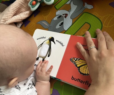 Not too big or too small, this sturdy, padded activity book is just the right size for little hands to hold. There's no need for Mom and Dad to turn the pages. Babies and toddlers can turn the tough board pages themselves, which helps to develop their fine motor skills while building an early language foundation.