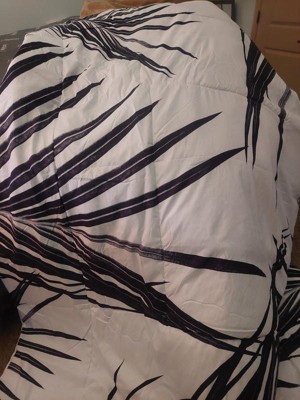 This is a lovely queen comforter set that comes with comforter and 2 pillow cases. It is black and white and will match all decor. It basically looks like black shadows of palm fronds on white. It's tropical but not overkill. It's fluffy and soft but the material is not very soft. It's basically your typical entry level comforter, great for a guest room or college kid starting out but I'm not sure I'd want it on my bed for everyday use since it feels like it's made for kids almost based on the quality if that makes sense. I would have loved it when I was younger but I've definitely become more discerning as I've gotten older. I plan to use in my guest room and it will be perfect there.