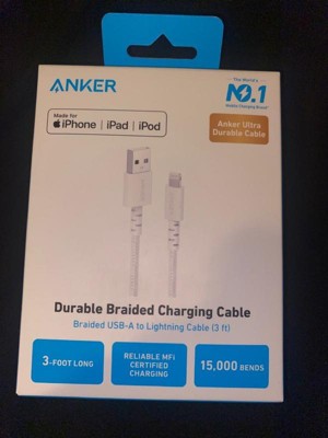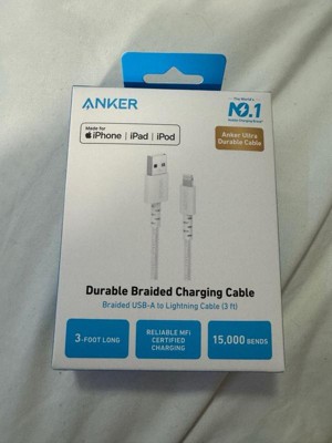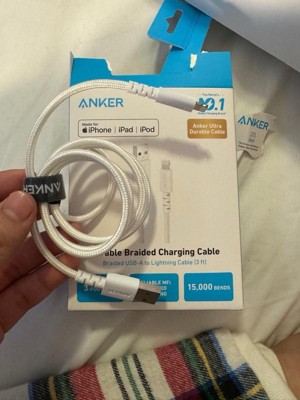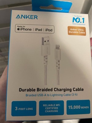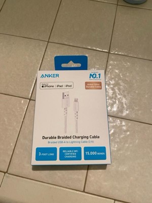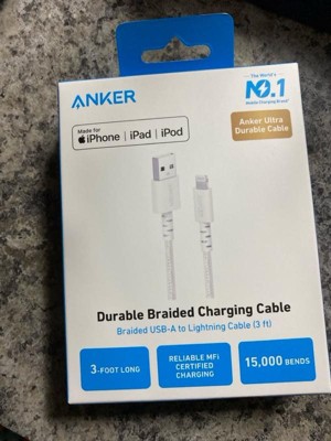Anker 3' Braided Lightning to USB-A Charging Cable - White