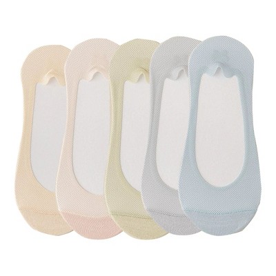 Anna-Kaci 5 Pairs Women Ice Silk Low Cut Liner Socks Deep Cut Design Anti-Slip Cotton Sole Breathable Invisible Socks for Flats