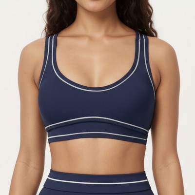 Anna-Kaci Active Women's Asymmetrical Neck Colorblock Sports Bra with Strap Design and Stretch Fit Fabric - Large, Navy