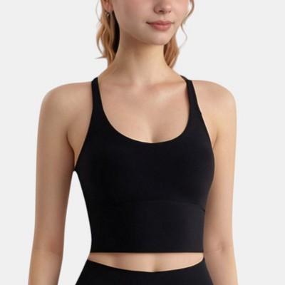 Versatile Activewear Piece: Perfect for pairing with leggings, sweatpants, or layering under tanks for a polished sporty look. Keywords: Anna-Kaci Women's Sports Bra, Cross Back Active Top, Scoop Neck Supportive Tank Top, Wide Band Medium Support Sportswear, Stretch Fit Activewear for Women.