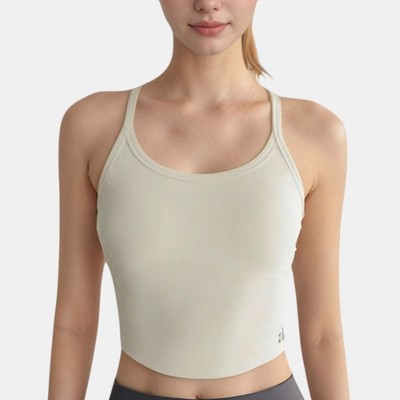Anna-Kaci Active Women's Longline Sports Bra with Spaghetti Straps and Scoop Neck for Light Support Yoga and Lounge - Small, White