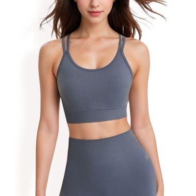 Versatile Activewear Staple: Clean lines and a modern cut make it easy to pair with leggings, joggers, or shorts for any activity. Keywords: Anna-Kaci Women's Scoop Neck Sports Bra Wide Shoulder Straps Elastic Underband Performance Fabric Low to Medium Support Activewear