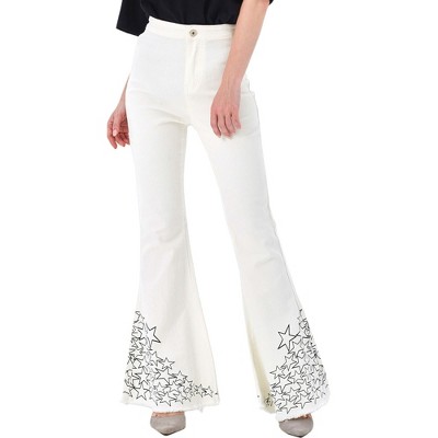 Anna-Kaci Classic High Waist Long Denim Frayed Hem Bell Bottom Jeans for Everyday Casaul Wear - X Large, Off-White
