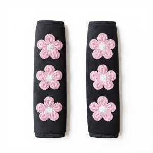 Product Name: Anna-Kaci Floral Embroidered Seat Belt Covers Set with Soft Plush Padding - Pink