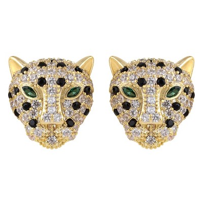 Alilang Gold Plated Leopard Cheetah Panther Head Animal Zircon 925 Sterling Silver Stud Earrings for Women, Gold