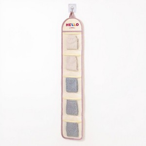 The Anna-Kaci Hanging Wall Storage Organizer with Five Mesh Pockets and “HELLO” Print Design offers a fun and functional way to keep your space clutter-free. Made from lightweight, durable fabric with breathable mesh pockets, it’s perfect for storing socks, accessories, or small household items. The slim vertical shape saves space while the cheerful “HELLO” print adds a charming touch to your room. Ideal for bedrooms, closets, or entryways, this organizer helps keep essentials neatly within reach.