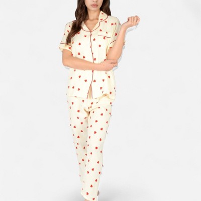 Versatile Sleepwear Style: Ideal for bedtime, at-home lounging, or casual mornings, offering a fun yet comfortable style. Keywords: Anna-Kaci Women's 2-Piece Set Pajama Set, Long Sleeve Button Front Top with Relaxed Fit Pants, Heart Print Loungewear, Comfortable Sleepwear for Women, romantic, cozy, Valentine, elevated sleepwear and intimates, Valentine’s pajamas, Heart-print pajamas, Romantic loungewear, Cozy Valentine’s outfits