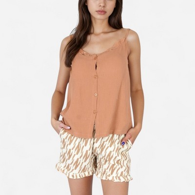 • Plaid Shorts with Ribbon Drawstring: The coordinating shorts have a stylish plaid pattern and a contrast ribbon drawstring for a secure yet feminine fit.