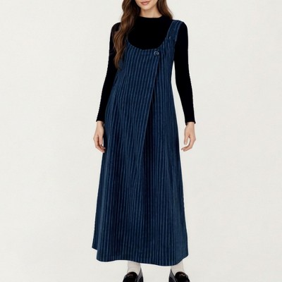 Vertical Pinstripe Pattern: The pinstripe design elongates the look of the dress, enhancing the maxi length and creating a polished, refined appearance.