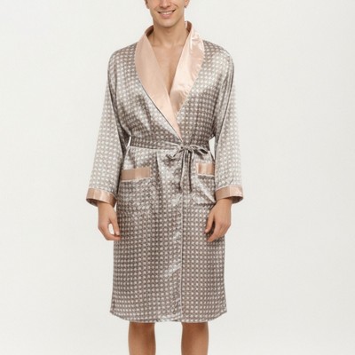 The Anna-Kaci Men's Satin Robe brings a touch of sophistication with its elegant floral baroque pattern and contrasting trim details. Made from smooth satin fabric, it offers a lightweight and silky texture that feels luxurious against the skin. The robe features a self-tie belt for a personalized fit and a classic shawl collar that enhances its refined appeal. Perfectly combining comfort and timeless style, this robe is ideal for those who appreciate elevated loungewear.