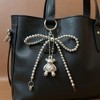 Product Name: Anna-Kaci Metallic Beaded Bow Keychain with Crystal Bear Charm and Ring Accent - Silver