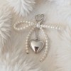 Product Name: Anna-Kaci Pearl Beaded Bow Keychain with Silver Heart Charm and Heart Clip - White
