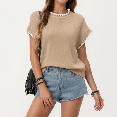 - Easy Styling Essential: Pairs effortlessly with jeans, shorts, skirts, or layered looks. Keywords: Anna-Kaci Knit Top, Short Sleeve Knit Shirt, Textured Knit Top, Contrast Trim Knit Shirt, Women's Casual Knit Top, Everyday Knit Shirt
