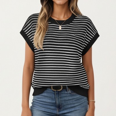- Versatile Wardrobe Essential: Easy to pair with jeans, shorts, or layered looks for everyday outfits. Keywords: Anna-Kaci Knit Top, Sleeveless Knit Shirt, Striped Knit Top, Textured Knit Tank, Women's Casual Knit Top, Everyday Knit Shirt