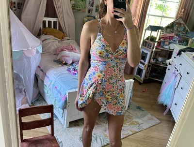Women's Floral Print One Piece Swim Dress with Ruched Bust and Adjustable Side Tie Skirt Overlay - 2 of 4Women's Floral Print One Piece Swim Dress with Ruched Bust and Adjustable Side Tie Skirt Overlay - 3 of 4Women's Floral Print One Piece Swim Dress with Ruched Bust and Adjustable Side Tie Skirt Overlay - 4 of 4