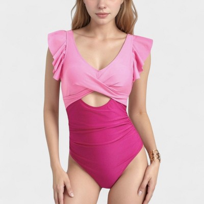 Anna-Kaci Swim Women's Mesh Panel One Piece Swimsuit with Ruffle Shoulder Detail and Deep V Neckline - 2 of 4Anna-Kaci Swim Women's Mesh Panel One Piece Swimsuit with Ruffle Shoulder Detail and Deep V Neckline - 3 of 4Anna-Kaci Swim Women's Mesh Panel One Piece Swimsuit with Ruffle Shoulder Detail and Deep V Neckline - 4 of 4