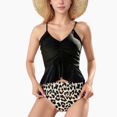 • Comfortable and Stretchy Fabric: Made from soft, stretchy swim fabric that ensures ease of movement and a secure fit throughout the day. Keywords: ruffle tankini bikini set tropical leaf print peplum top bow front adjustable straps solid bottoms beach swimwear two piece set