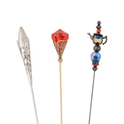 This 3-piece vintage-style hat pin set features intricate designs including crystal flowers, butterfly accents, and pearl embellishments. Perfect for adding charm to hats, scarves, shawls, or lapels, each long stick pin provides both decorative flair and secure placement. These unique accessories blend classic elegance with playful detail, making them ideal for vintage-inspired outfits or daily wear.