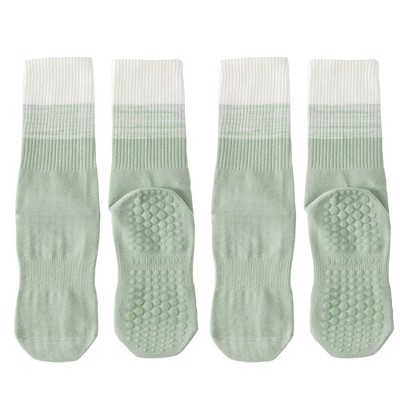 Anna-Kaci Women's 2-Pair Set Crew Athletic Socks with Striped Cuffs and Full Sole Grip for Yoga Fitness - 2 pairs-E