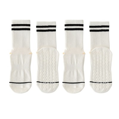 - Full-Length Grip Soles: Textured with anti-slip silicone dots on the bottom to provide traction and help prevent slips during yoga, Pilates, or walking on smooth indoor surfaces.