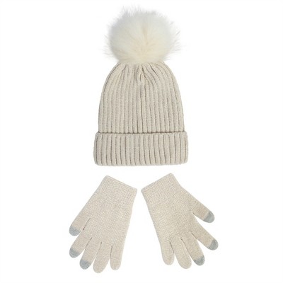 Anna-Kaci Women's Cable Knit Beanie Hat with Decorative Pearl and Star Embellishments and Soft Pom Detail - One Size Fits Most, Beige