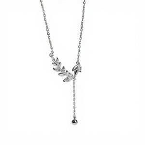 Alilang Women's Crystal Leaf Pendant Necklace with Drop Chain Accent - Silver