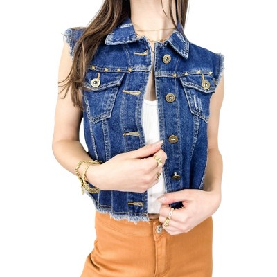 Chest Flap Pockets: Two button-flap chest pockets add a utility-inspired design element while providing a place to stash small essentials.Keywords: Anna-Kaci Women's Light Wash Denim Vest, Sleeveless Button Down Vest, Frayed Hem Denim Layer, Vintage Casual Jean Vest with Pockets