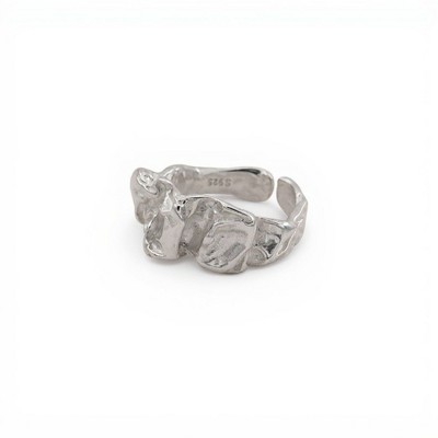 Alilang Women's Double Flower Leaf Design Ring with Crystal Detailing - Silver