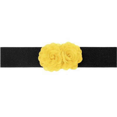 Alilang Women's Elastic Waist Belt with Gold Heart Buckle - Yellow