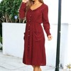 Elevate your casual wardrobe with our Long-Sleeve Button Down Swing Dress, crafted from soft, light, and breathable 100% polyester fabric for ultimate comfort. This midi dress features exquisite details including a casual, loose fit, long sleeves, solid color, and an elegant button-down design with functional deep spacious pockets.