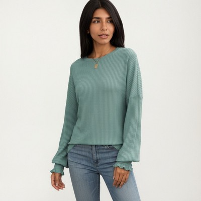 Anna-Kaci Women's Long Sleeve Collared Knit Top with Subtle Textured Pattern and Relaxed Fit - 1 of 4