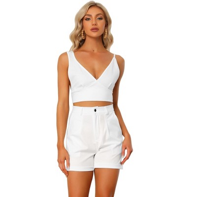 Anna-Kaci Women's Long Sleeve Crop Top and Elastic Waist Lounge Shorts Set - Large, White